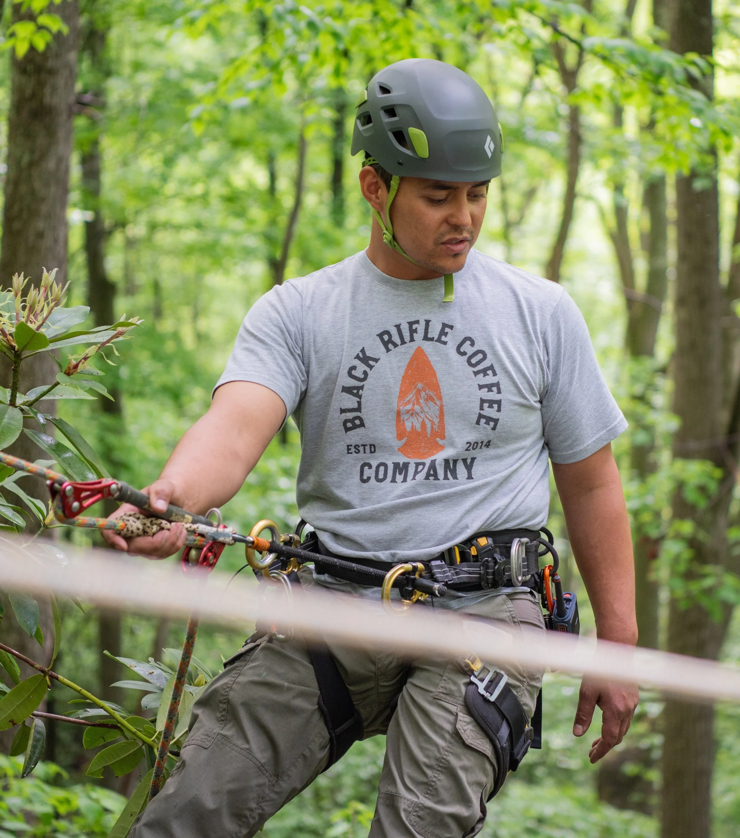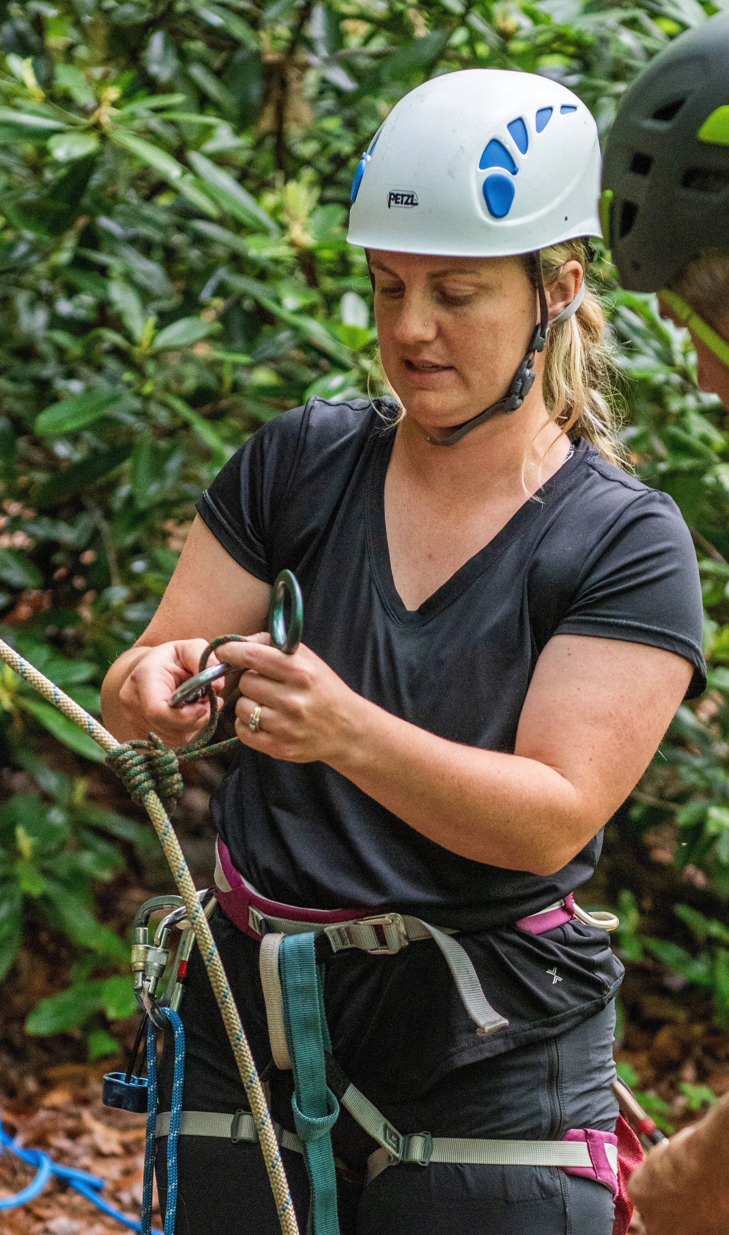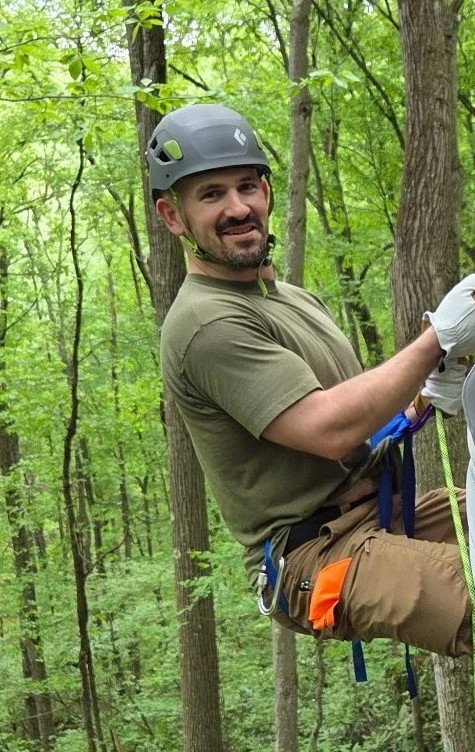Former USDA Forester (Montana & Colorado), Professional tree climber, aerial rescue trained to extract injured climbers from trees utilizing rope. Leads rope instruction, rappelling, rope bridge, food logistics and publicity.